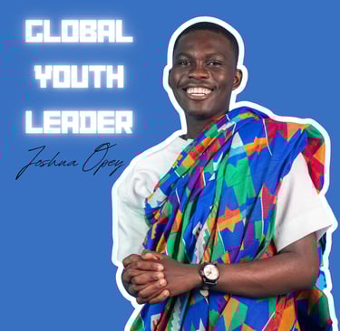 In our series of celebrating 30 Global Youth Leaders of 2024, Joshua Opey, comes first, hailing from, Ghana, the country known as the Gateway to Africa and it's warm friendly people and staying true to his roots, Joshua too, through his friendly demeanor and dedicated advocacy for youth development has made him into a role model for those to see, how humility, passion and perseverance can make one, a representative of 1.5 Billion Young Billion.